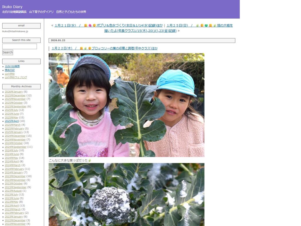 年中の収穫・調理の取り組みがIkuko Diaryで紹介されました。 写真多数、詳しい解説つきです。 >>1月22日(木) / 👧🌿👦ブロッコリーの葉の収穫と調理(年中クラス)ほか 私もいただきましたが、美味しかったです。