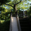 年長児は部屋に着くなり園庭に集合し、「なわとびリレー」に取り組んでいます。二人ペアになりリレーをするのですが、普通に走るのではなく、なわとびを使って走るのがポイント。 園庭から下の園庭に降りてたんぽぽ組前から大階段までを走り、また園庭に登...