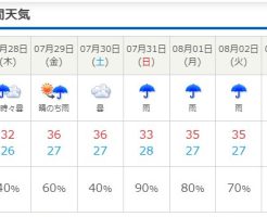 明日の天気予報は曇りです。それ以降の予報を見ても雨の日が続くようで、まるで梅雨はあけていないかのようです。