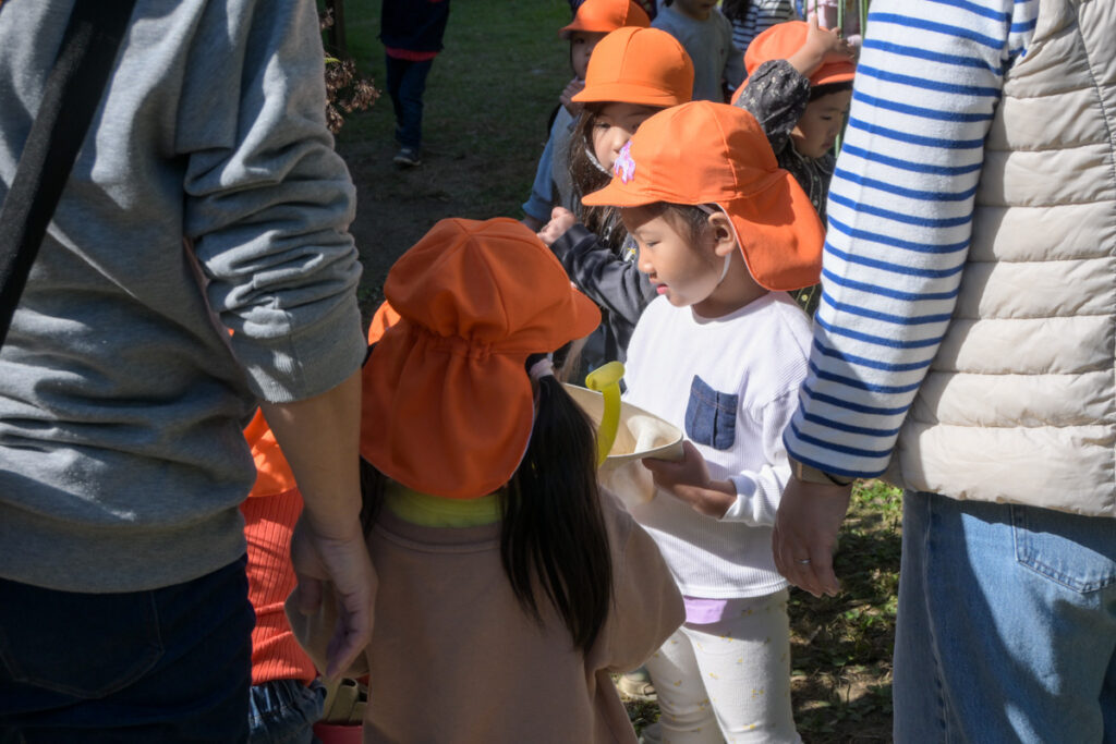 年少クラスは部屋で運動あそびをした後、園庭でもサーキットをしました。 園庭での活動の一コマをえにっき(フォトギャラリー)でご覧ください。 >>2025-10-28 おやまのえにっき(年少運動あそび) -