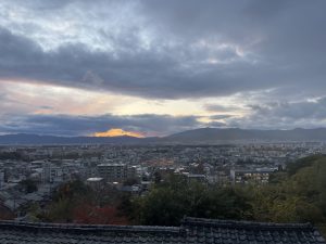 ちなみに、「遠山」と言えば私にとっては幼稚園から遠くに見える「愛宕山」のことであり、さる12月1日、その遠景の雲間に夕日の見えるなか、冷たい時雨が降ってきたので、「(蕪村の俳句の世界は)これだろう!」と思って写真を撮りました。蕪村は「違う」というかもしれませんが、私にとってこの俳句の雰囲気はこんな映像です。