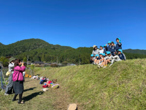 無事収穫を終えて、年長、年少、南中の順に記念写真を撮りました。