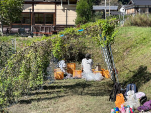 ツルを切り、夢中で掘りました。スコップは使わずにひたすら自分の手で掘ります。