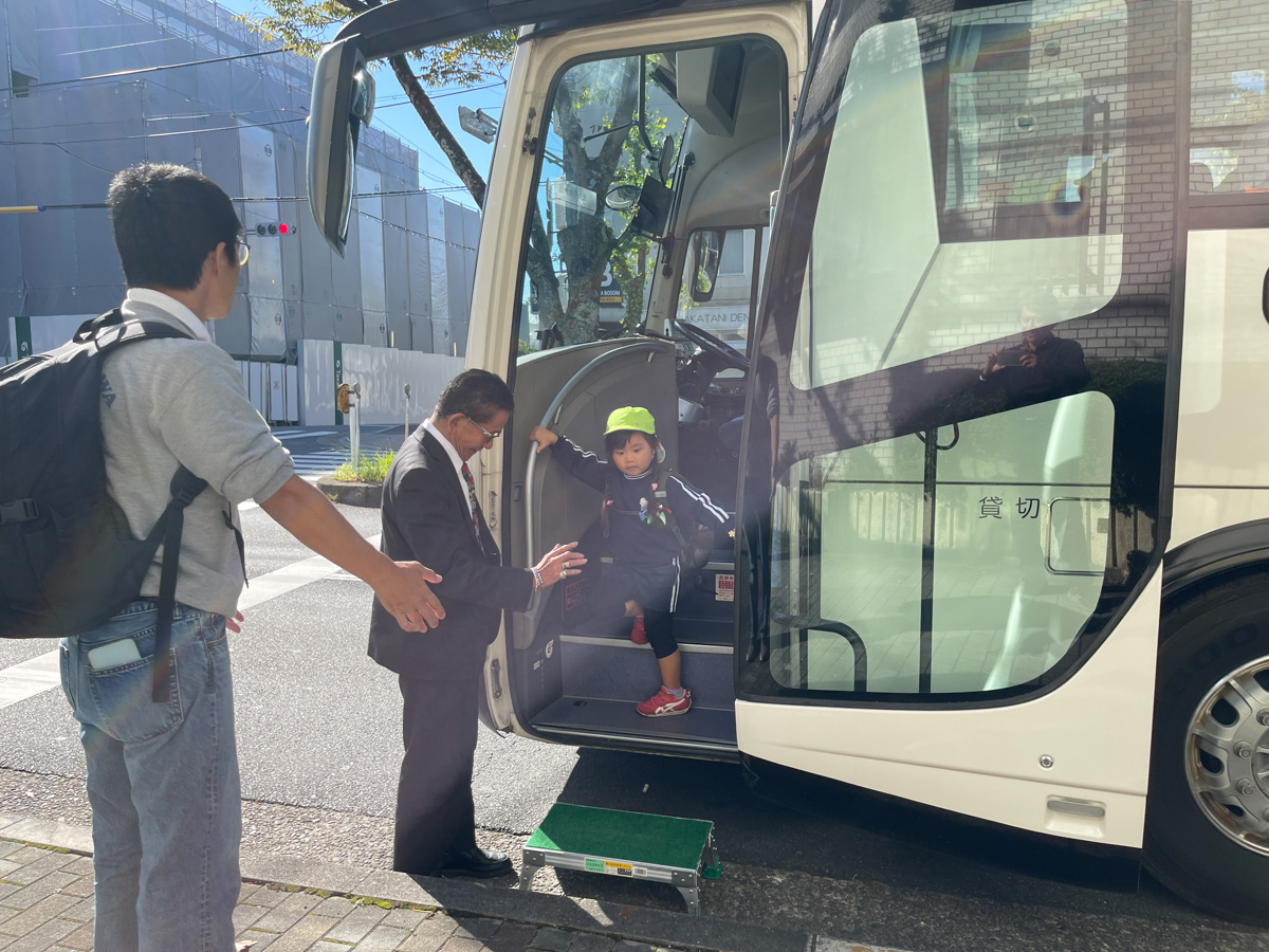 バスの中で年少児・満3歳児は疲れて寝てしまう子もいましたが、無事にバスは予定の場所まで到着。