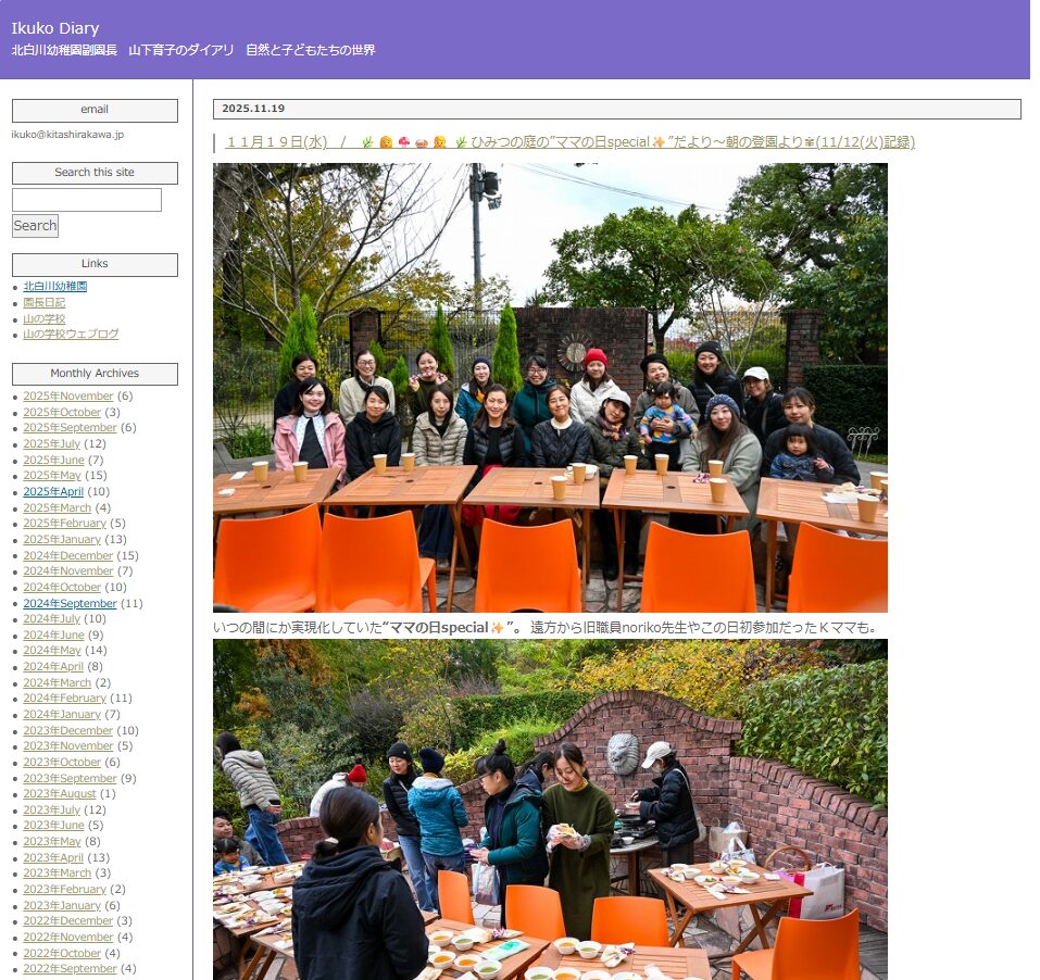 2025-11-20 2025 11/20 お知らせ 2025年11月20日 前回の「ママの日special」の記事がIkuko Diaryにアップされました。 >>11月19日(水) / ひみつの庭の”ママの日special✨”だより~朝の登園より✾(11/12(火)記録) お知らせ よかったらシェアしてね! URLをコピーしました! URLをコピーしました! 2025-11-19 えにっき更新 関連記事 2025-11-16 Ikuko Diary更新 2025年11月16日 2025-11-08 Ikuko Diary更新 2025年11月8日 2025-11-06 お買い物ごっこの様子 2025年11月6日 2025-11-02 Ikuko Diary更新 2025年11月2日 2025-10-25 Ikuko Diary更新(遠足) 2025年10月25日 2025-10-23 秋の遠足 2025年10月23日 2025-10-05 今後の予報 2025年10月5日 2025-10-04 運動会延期のお知らせ 2025年10月4日 コメント コメントする コメントをキャンセルコメント ※ 名前 ※ メール ※ サイト Δ