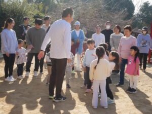 今日は快晴に恵まれ、予定通り、Segawa先生による「親子で楽しむ 安全をはぐくむ運動あそびをしよう!」を園庭で実施しました。