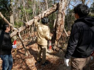 子どもたちが日ごろ出かけて楽しむ森に朽ちて危ない木はないか、実際に登って確かめてくださったり、園に戻っては、力を必要とする作業をいくつも行っていただくなど、様々な角度で手入れをしてくださいました。