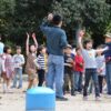 園児たちにはこの牛乳パックボールが人気です。思いっきりキックしてもなくなる心配はありません。
