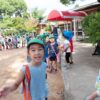 ゴール地点にクラス先生がタンバリンをもって待ち、それをたたけばゴールというしくみでした。