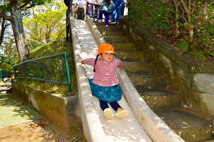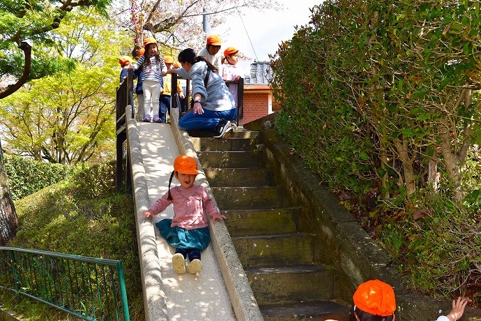 みんなですべってきたらそのまま向こうの石段へ走って行くサーキット滑り台~✨