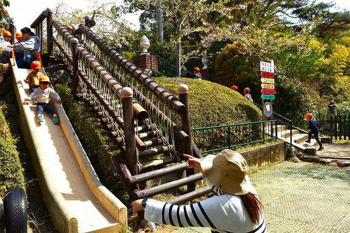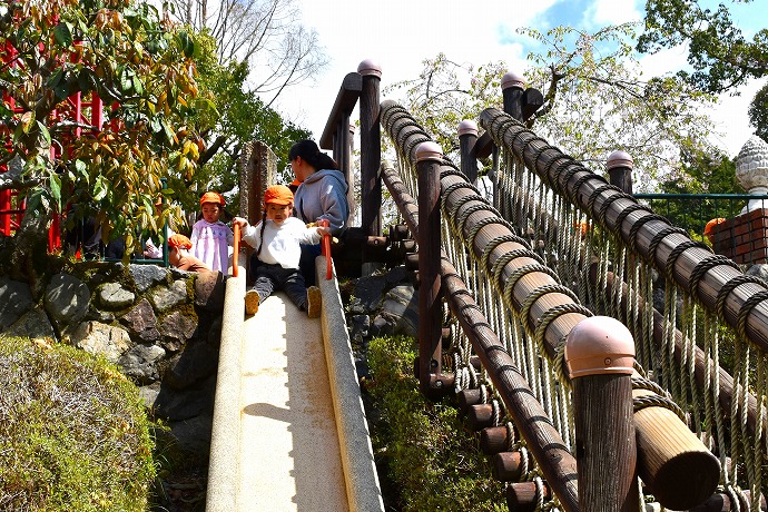 ちょっと距離が長いアスレチック横の滑り台へ~。私一番にすべりまーす✨