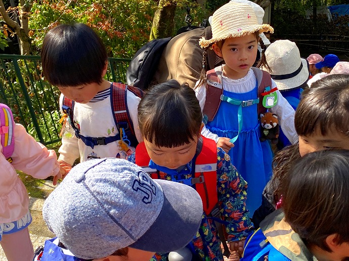 園庭のグローブジャングルに入ったり、年中長が遊ぶ姿を見たりしながら滑り台を思いきり楽しんだ今日の午前中でした。帰りのお仕度をしにクラスに戻りましたが、まだまだ遊んでいたい年少クラスの子ども達でした。