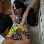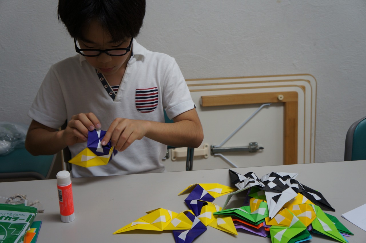 つくる5~6年(2016/5/23) 公開日:2016/05/24 つくる 福西です。前回のユニット折り(120枚組)を完成させました。 三角の部分が240面。できた時は壮観でした。 また早く来ていたY君は、ドラゴンを作りました。 ドラゴン、完成。 T君が来たので、ユニット折り再開。 一つの「星」のまわりに五つの星を合わせて、それを半球とします。 半球できあがり。 こちらも半球できあがり。 半球と半球を合体。 のり付けに一番苦労しましたね。 最後の一枚ののり付け。 完成。 「出来たー!」 関連記事 つくる1~2年(2017/3/2)つくる5~6年(2015/4/20)ひねもす(2021/6/29)つくるB(0421)つくる3~4年(2016/12/12) 投稿ナビゲーション つくる2~3年B(2016/5/19)つくる1年(2016/5/26)
