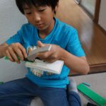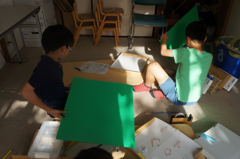 ピッチャーは最初、手転がしを想定していましたが、生徒たちからアイデアを出してくれました。スライダー式とゴム式とが見られました。