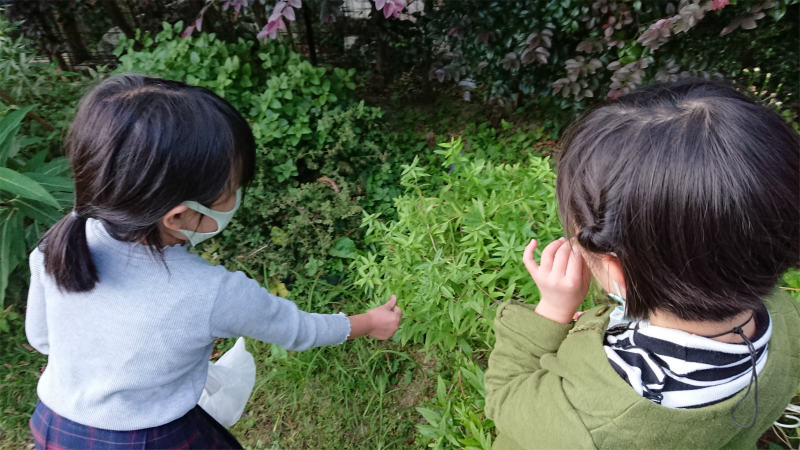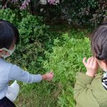 教室の外に出て、木の実をさがしていると、「むかご」も見つかりました。