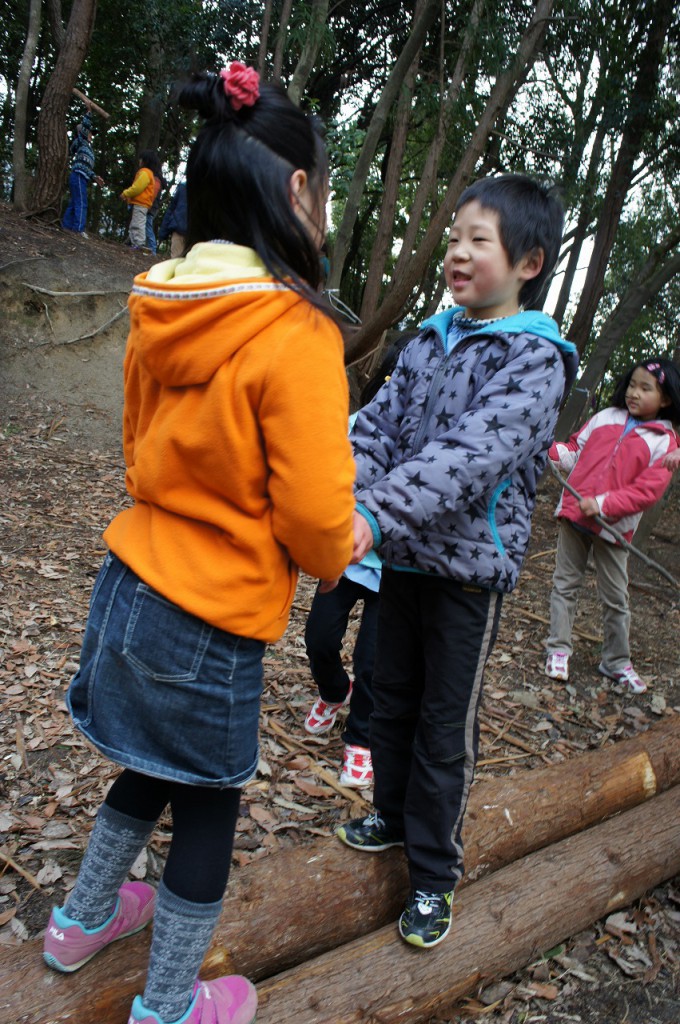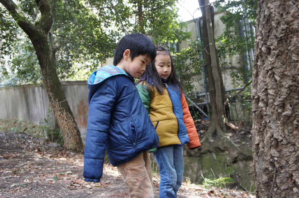 「まるきのいっぽんばし」(劇の練習)をはじめる二人