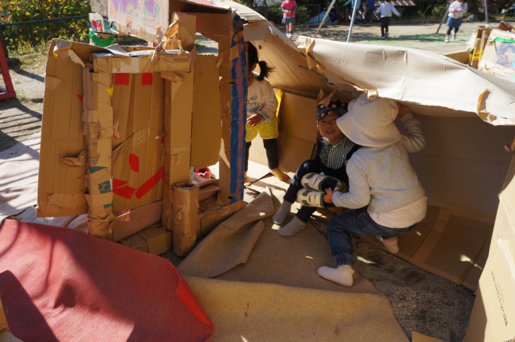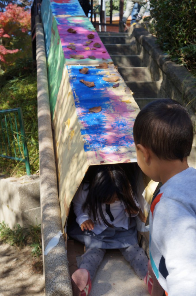とりわけ、すべり台(トンネル)が、押すな押すなの大人気でした。何度もすべっている様子に、笑顔がたくさん見られました。