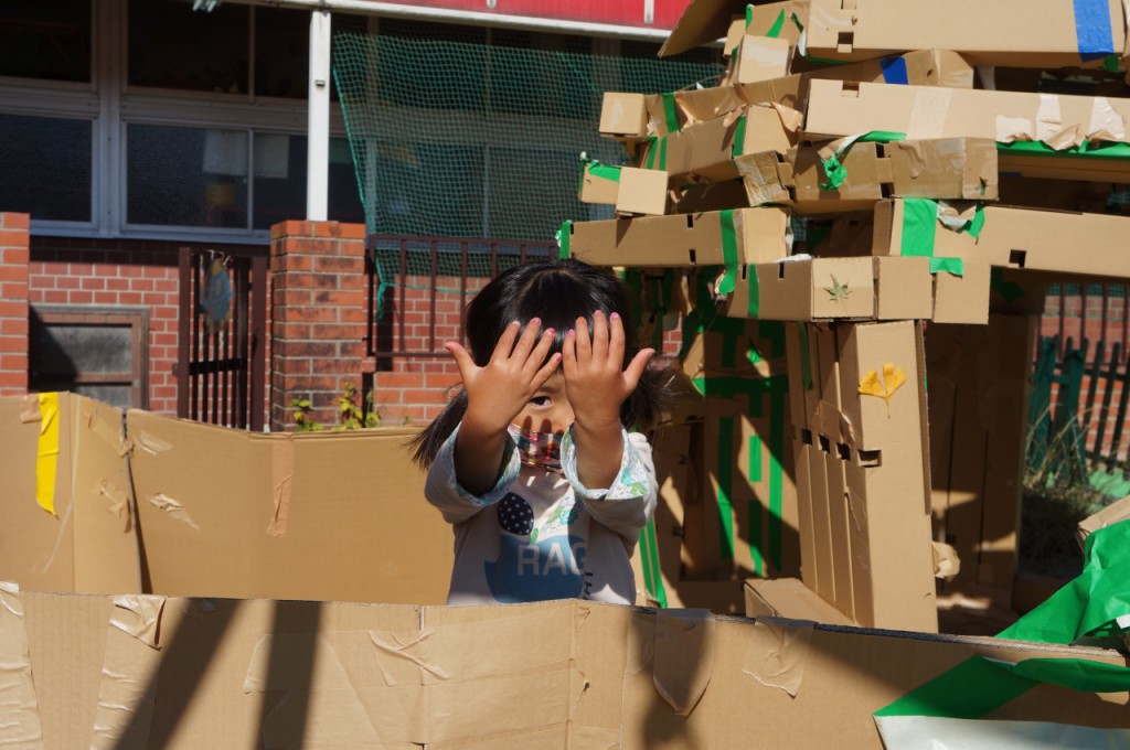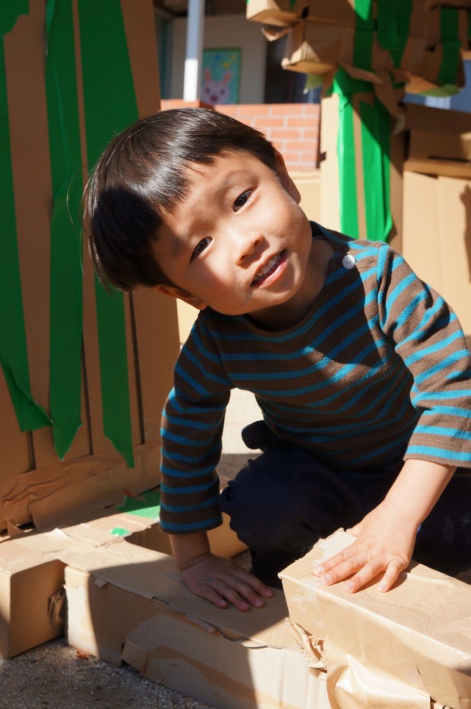 年少・年中さんが、お昼ご飯を食べたあとの自由遊びで、年長さんが「いいよ」と言ってくれたブースで元気よく遊んでいました。