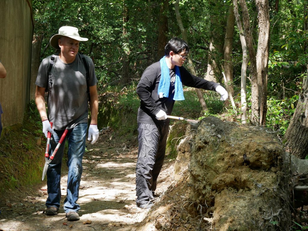 お父さんたちが、幼稚園のコンポスト、幼稚園から通じる「ひみつの森」、「ひみつの谷」を手入れしてくださいました。
