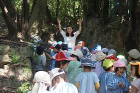 それでは、そろそろ幼稚園にもどりましょう。ここまでは園庭からしばらくお散歩をしている間に到着する距離です。秋の森の香りに包まれたとても楽しく素敵な時間でした。