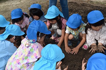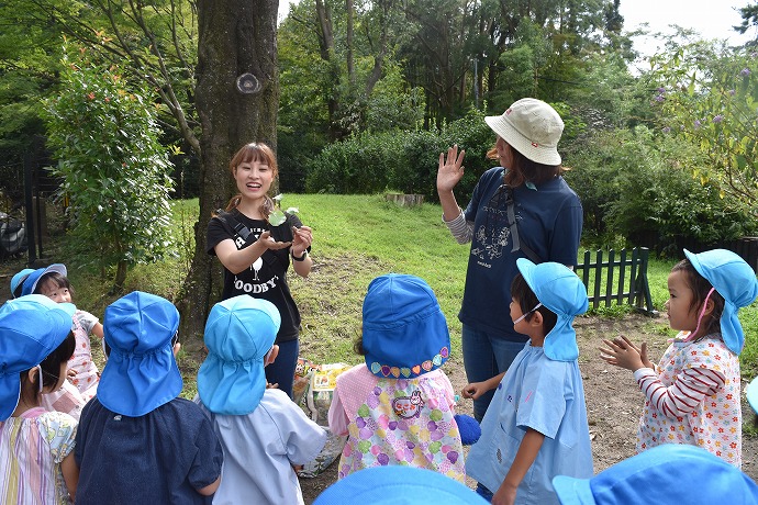昨日より園内を歩いていると、ふとキンモクセイの香りに気づきます。振り返って木を見るとオレンジ色の花が開花しつつある、そんな秋の園内になりました。本日(9/27木曜日)は年長クラスが一人一枚ずつ日本手ぬぐいを使って染色(玉ねぎ染め)を行いました。年少クラスは花壇で育てたヒマワリの絵🌻を描いている最中です。後日ご紹介致します。