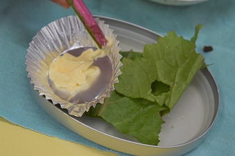 次は新鮮なグリーンのカブラの葉っぱを手にし、マヨネーズを少しつけながら食べてみました。