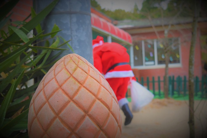 “ここはたんぽぽぐみだな。みんなよいこにしているようだ😊 Merry Christmas,boys and girls!” それぞれの園舎の中からは「ありがとう~、サンタさ~ん!」と子ども達の歓声が聞こえてきます。