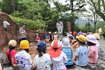 先生に手伝ってもらいながら体操服、水着などのお着替えも随分早くなった年少クラスの子ども達です。行ってきまーす!と手を振っています。