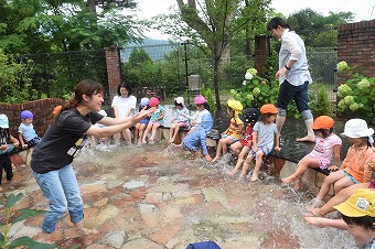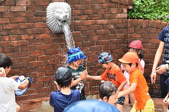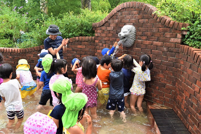 ライオンさんからのお水をかぶったり、先生と水かけっこをしたり💦