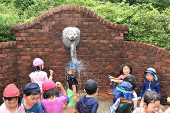 今日もことりぐみ、たんぽぽぐみは仲良しで水あそび。ライオン🦁さんも喜んでお水を出してますよ~。