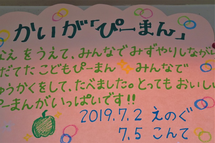 もっとほしいなあ~。お弁当を食べたらおかわりしましょう。 この日、ピーマンが苦手な〇〇ちゃんがペロリと食べてしまいました😊 ちょっとしたことで苦手意識が変化したりすることもあるから不思議です。