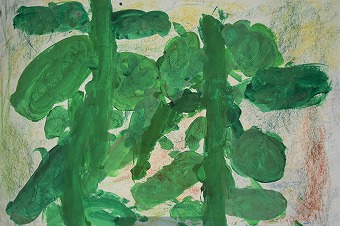 色合いがナイス! 確か、お家で飼っている鳥の絵と話してくれた記憶があります。暖かでしっかりとした印象の絵です。