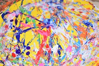 納得のいくように黙々と取り組みを続ける姿です。明るいピンク色のベースカラーの上の中央の混色が粋な感じ。