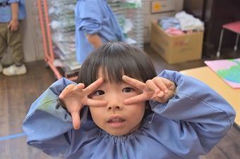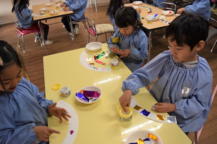 はさみも随分上手に使えるようになった年少クラスの子ども達です。