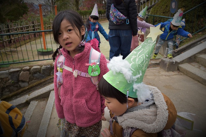 子ども達がつくったクリスマス帽子をかぶり、各グループが出発の時間を待っていました。
