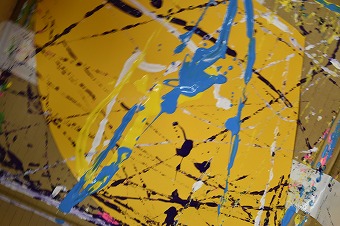 思いっきりくるくるくる~と紙中に大変ダイナミックにペインティング💗