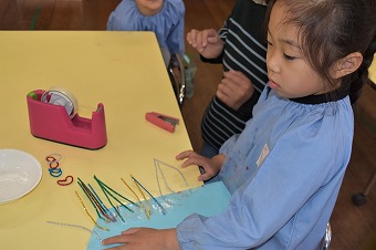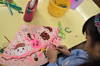 この日、年長クラスはカレンダー製作の仕上げをしました。