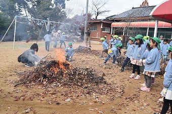 こちらは園内の落葉樹の落ち葉コンポスト。いっぱいになると色彩的にも目に美しく映えます。森で子ども達が山ほどの落ち葉を舞い上げて遊んだ日には、落ち葉をたくさん集めて持ち帰りこのコンポストに入れて混ぜました。モミジ、クヌギ、モクレンなど紅葉が終わっても子ども達にとって色のお楽しみは続いています。