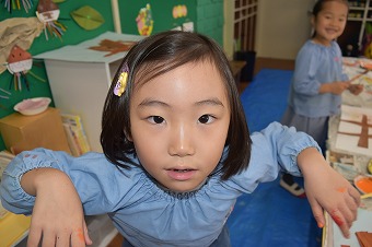 いつもきちんと両手を前にしてご挨拶する年長の女の子。明日も元気で来てください💕