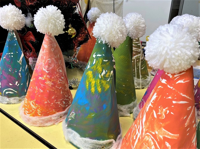 各クラスが完成後、それぞれ棚の上に飾ってクリスマスお楽しみ会を楽しみに過ごしているところです。