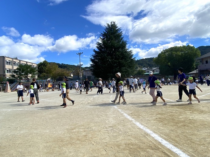 各学年毎に親子参加で取り組んでいただきました。はじめは子ども達がくまさん歩きでスタート🐻👣