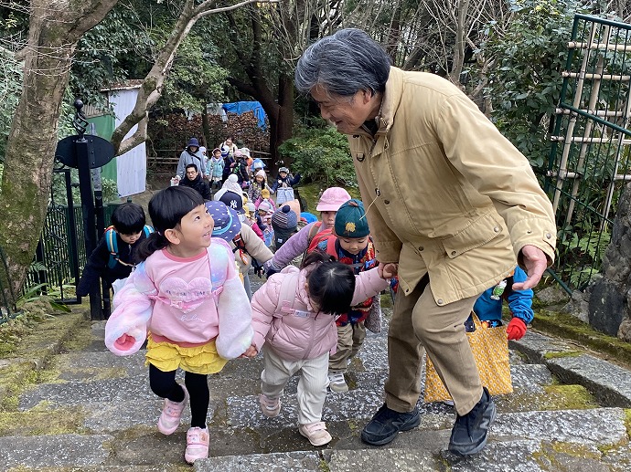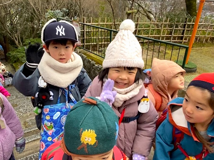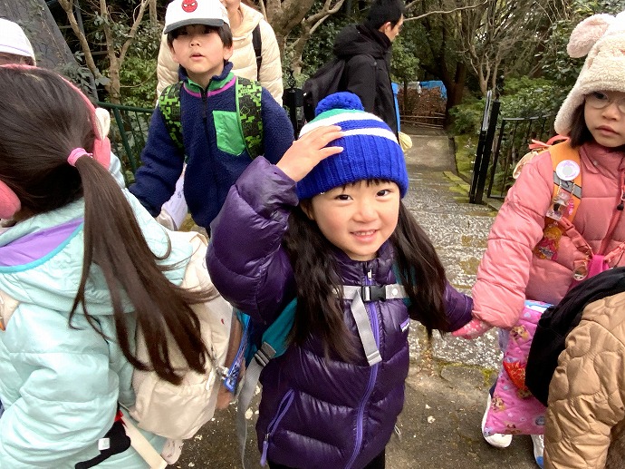 懐かしい笑顔に会えました。おはようございます! 満3歳児Kちゃんもいつもながら逞しく上ってきて、ほぼ全員が再び元気に集うことができたお山の朝となりました。