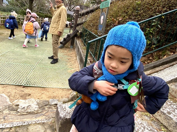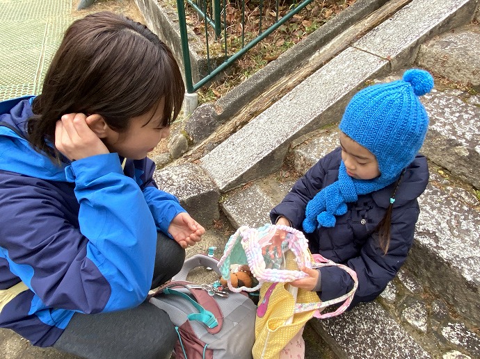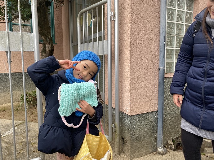 各園舎に向かうみんなを見送っていると、「あっ、そうそう」と年長Eちゃん💙