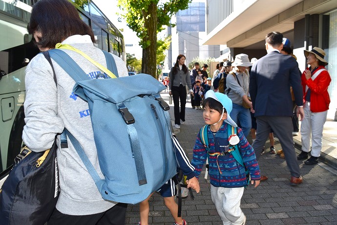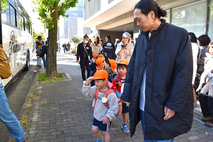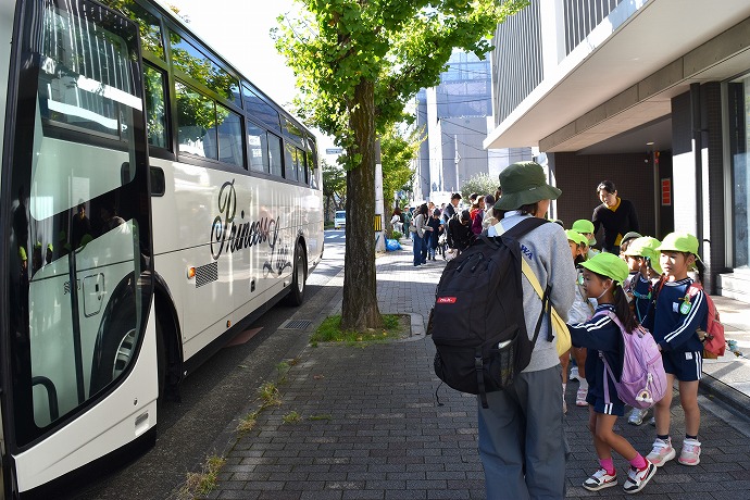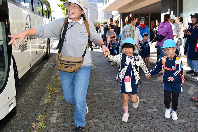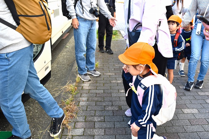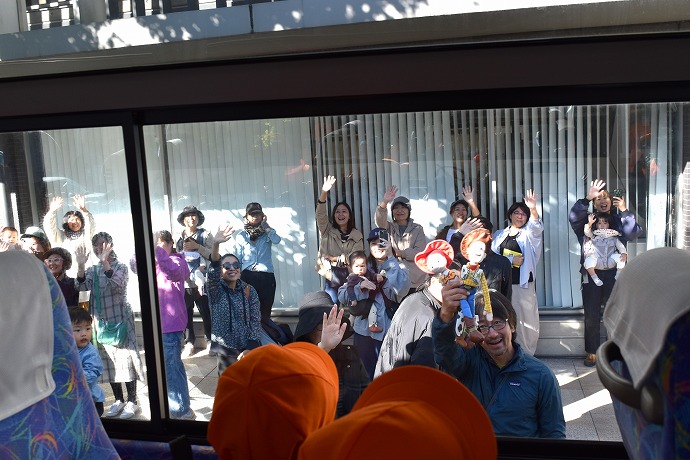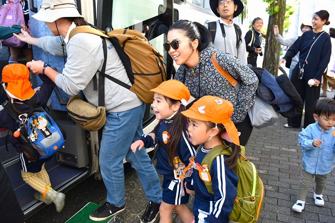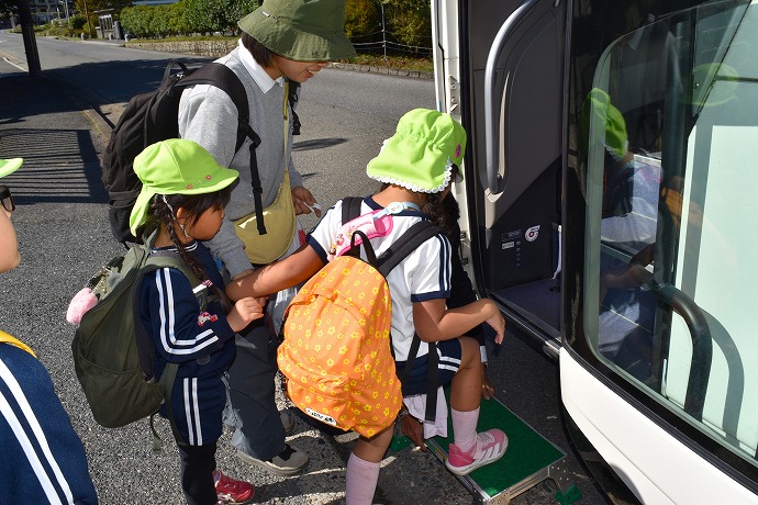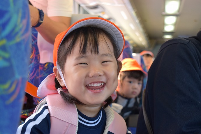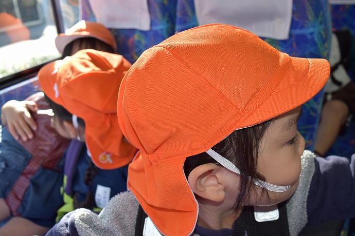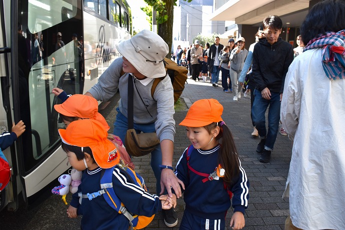 いってらっしゃーい✨とママやパパの声が聞こえてきます。普段は歩いて登園しているのでバスに乗るのはワクワクします。