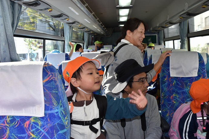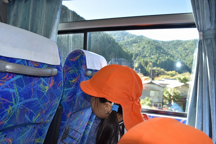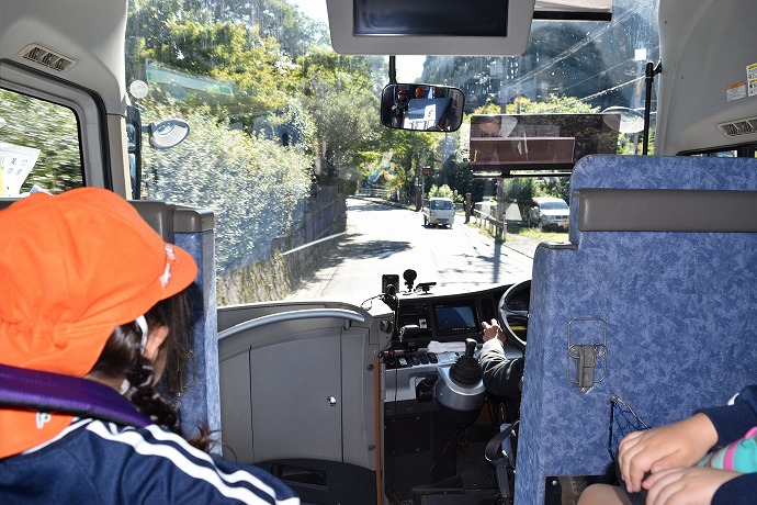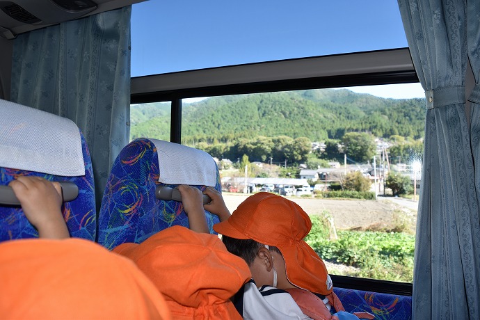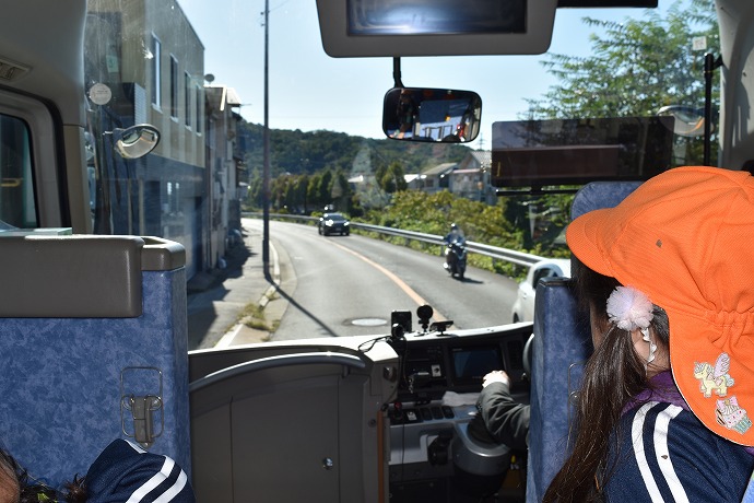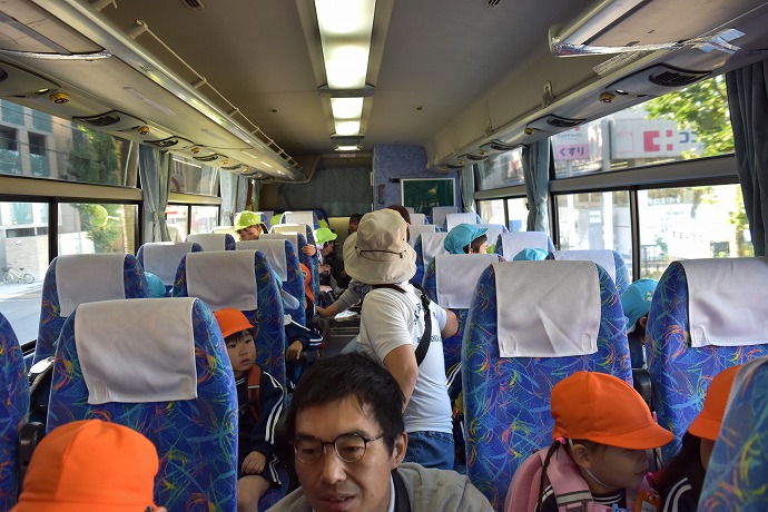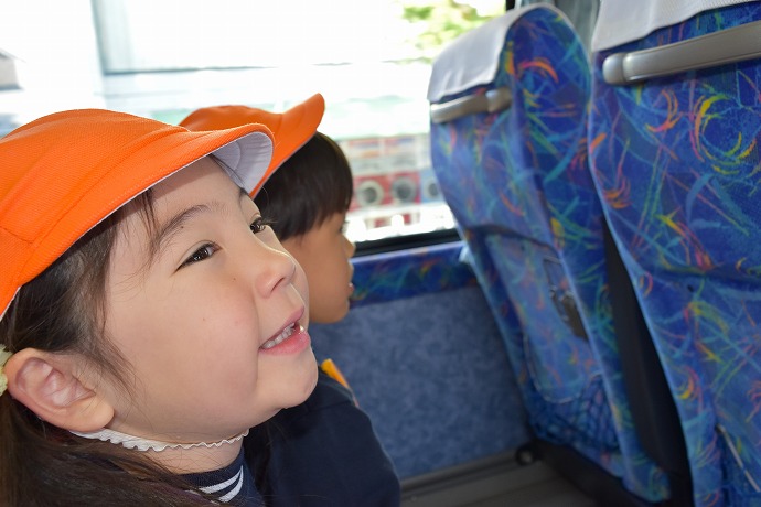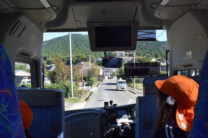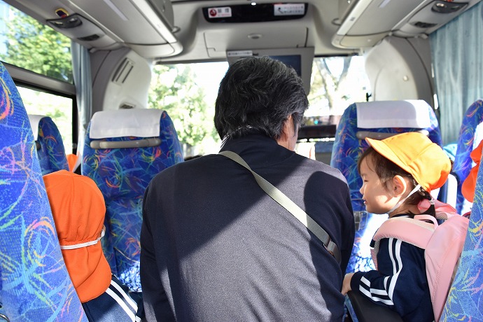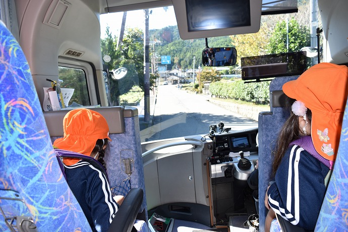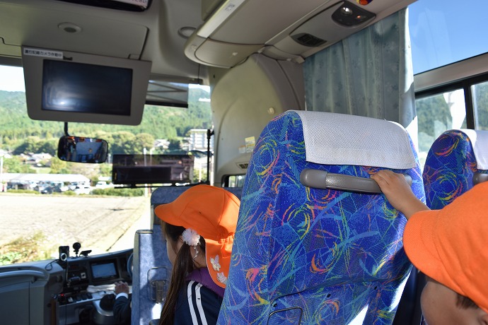 バスの中は外の景色を見たり楽しくお話する声が響きます。