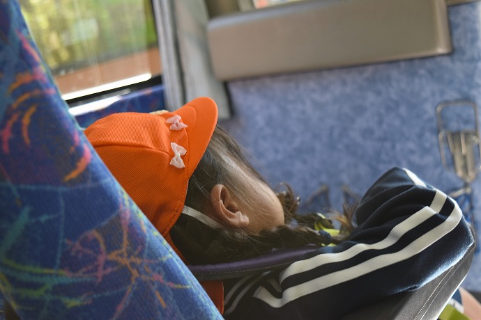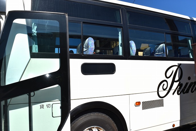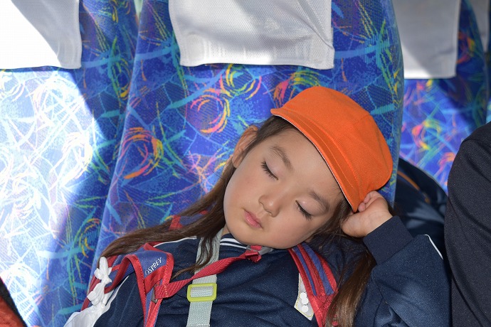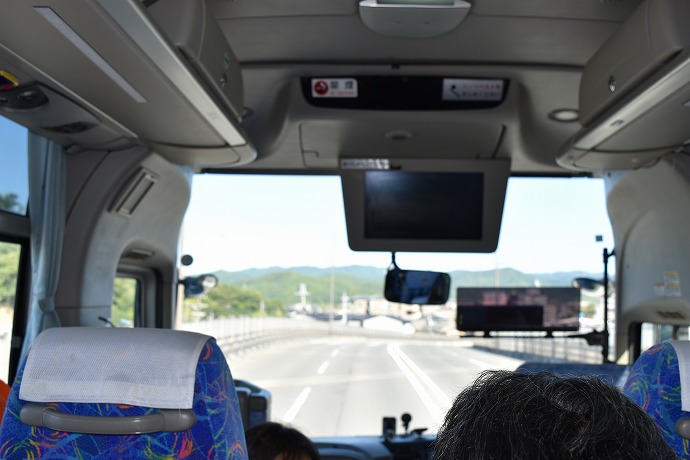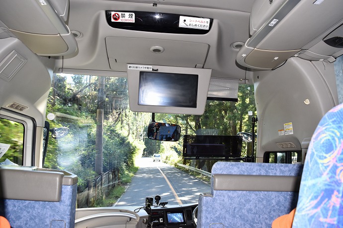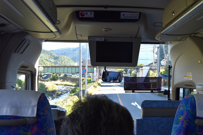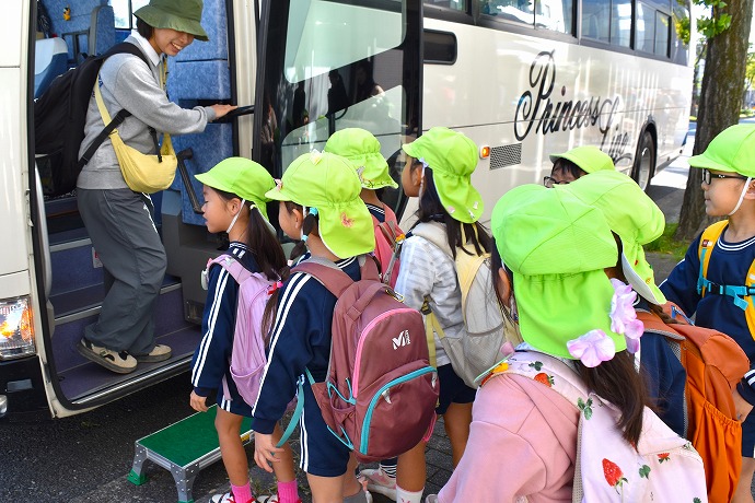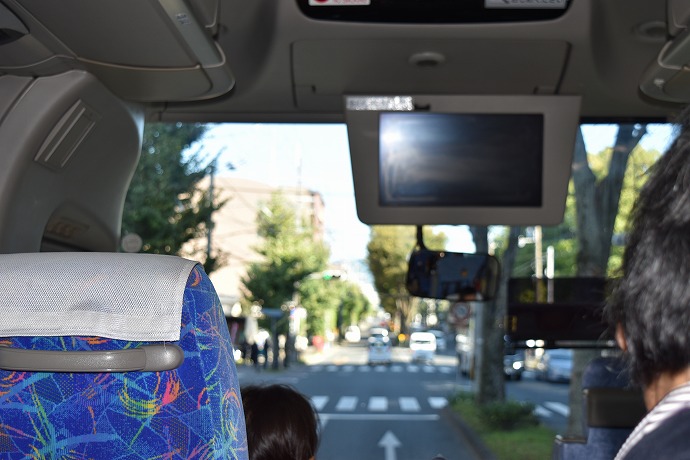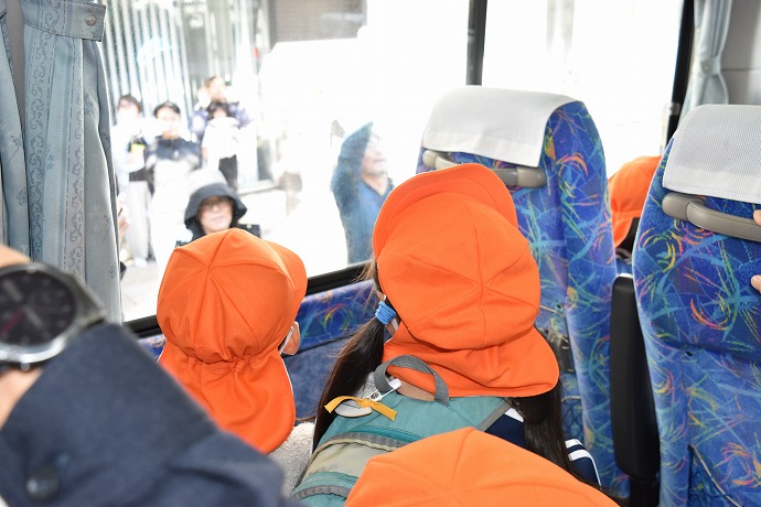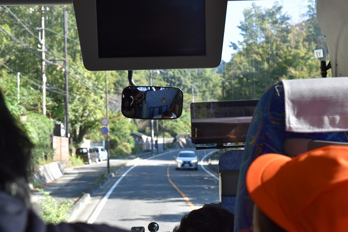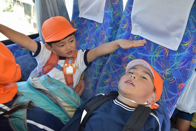 バスの中は外の景色を見たり楽しくお話する声が響きます。