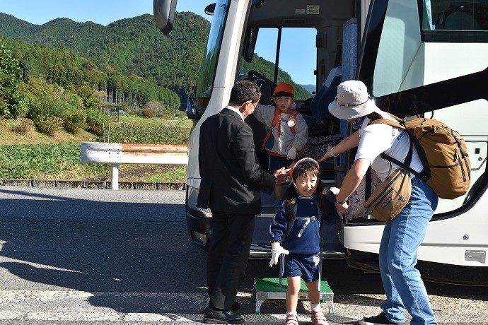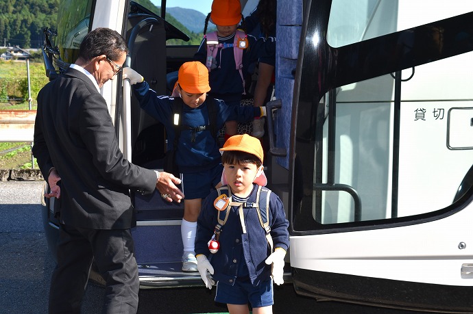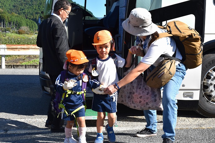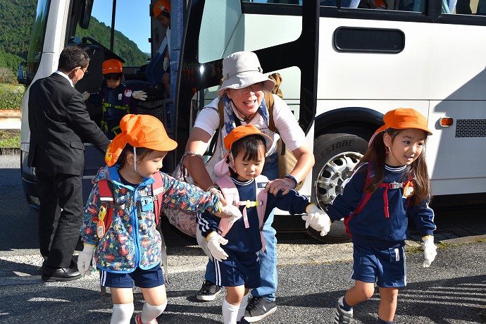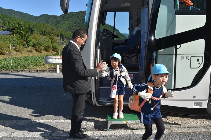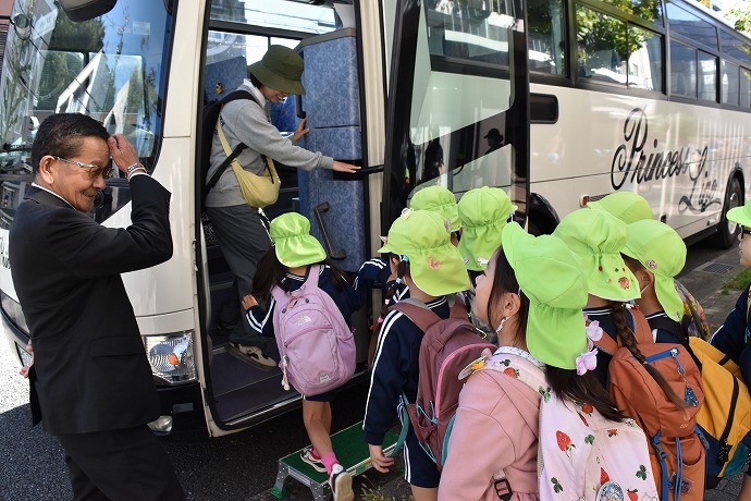 運転手さんありがとうございました! 年長クラスは手際よく到着前に軍手をはめました。