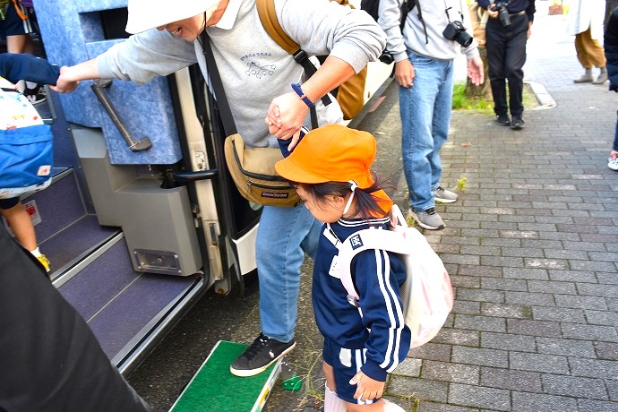 お父さん、お母さんに「いってきます」をたらバスへ。