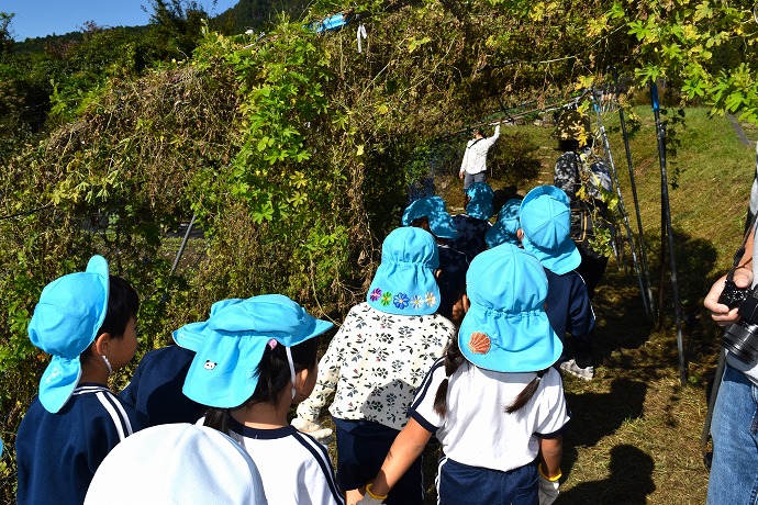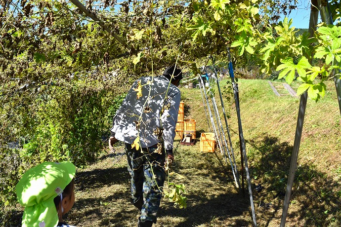 先生は次々に株元の蔓をカットし、子ども達は蔓を引っ張ります。