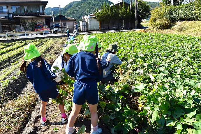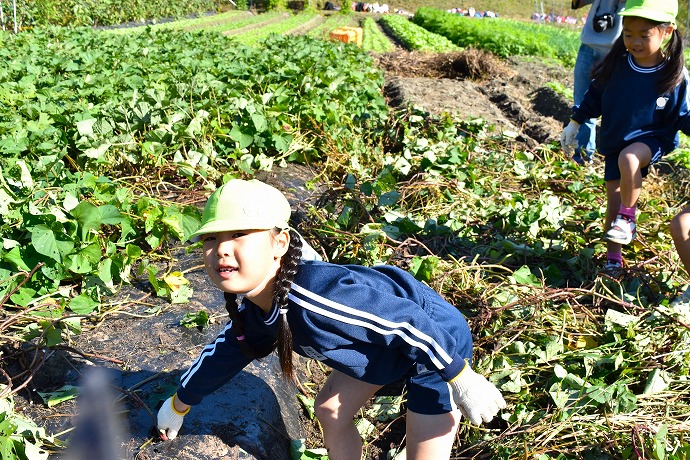 青々とした葉と蔓を引っ張り取り除くことでサツマイモ全体に触れることができてより深く知る学びとなりますが、それを子ども達に体験してもらいたいと農園さんは仰っていて、私としてもそれを本当に嬉しく思ったのでした。
